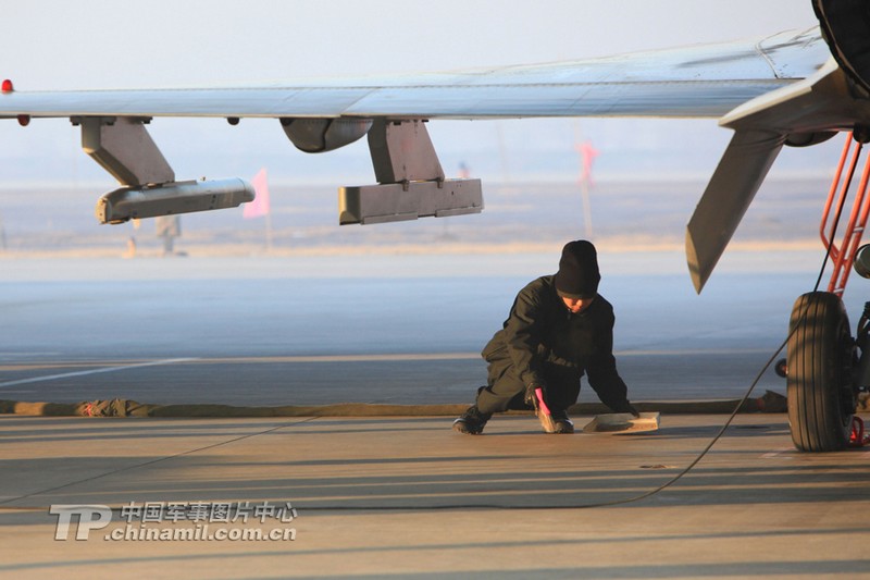 2013年1月6日,空軍華北機(jī)場(chǎng)某航空兵師在這一天新年首飛。在進(jìn)行了兩天的充分準(zhǔn)備之后,機(jī)務(wù)人員在早晨6點(diǎn)30分就準(zhǔn)時(shí)來(lái)到外場(chǎng)。上午9點(diǎn)整,數(shù)架殲十戰(zhàn)機(jī)準(zhǔn)時(shí)升空,開始了一天的訓(xùn)練。記者在外場(chǎng)有幸記錄下這冬日陽(yáng)光里精彩的飛行場(chǎng)景。(來(lái)源:中國(guó)軍網(wǎng) 苑小偉攝影報(bào)道)