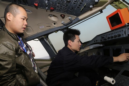 專業(yè)技術(shù)人員在102架機(jī)上進(jìn)行飛控上電自檢測(PBIT)。