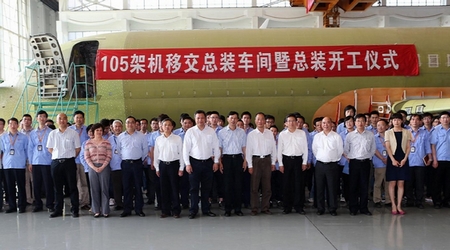 中國經(jīng)濟網(wǎng)訊 2013年5月14日,ARJ21新支線飛機105架機正式移交總裝車間開工總裝,標志著預(yù)投產(chǎn)工作取得了階段性重要進展。