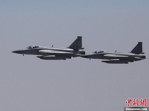 資料圖:李克強(qiáng)訪問巴基斯坦期間,梟龍戰(zhàn)機(jī)為中方專機(jī)護(hù)航。