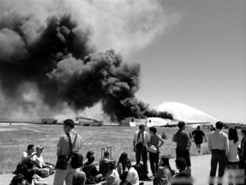 一些目擊者告訴當(dāng)?shù)仉娨暸_,這架波音777-200型客機最初降落正常,后因起落架出現(xiàn)異常,機尾著地,一些飛機部件脫落,飛機偏離跑道,起火燃燒。