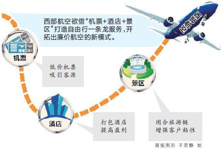 廉價(jià)航空如何構(gòu)建自己的商業(yè)生態(tài)?這是宣布轉(zhuǎn)型低成本后的西部航空的一大難題。昨日,商報(bào)記者獲悉,為打開(kāi)局面,西部航空宣布拉長(zhǎng)產(chǎn)業(yè)鏈,進(jìn)軍旅游市場(chǎng),將重點(diǎn)打造“機(jī)票+酒店”的組合旅游模式,探路低成本航空運(yùn)作商業(yè)生態(tài)鏈。這意味著西部航空的盈利觸角,將延伸到下游的在線旅游市場(chǎng)。對(duì)此,在線旅游服務(wù)企業(yè)表示,歡迎航空公司打包產(chǎn)品通過(guò)他們來(lái)銷售,但航空公司若想壟斷資源來(lái)?yè)屖,恐不受歡迎。