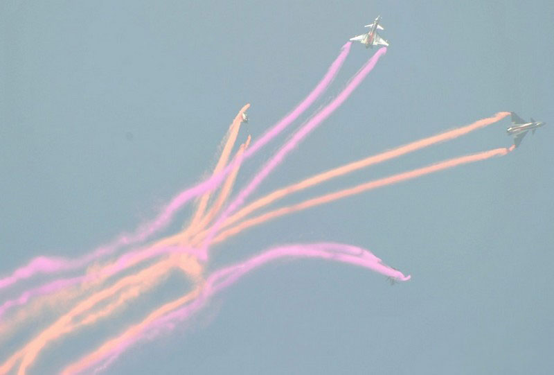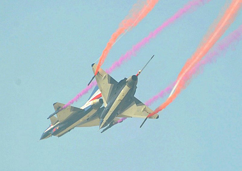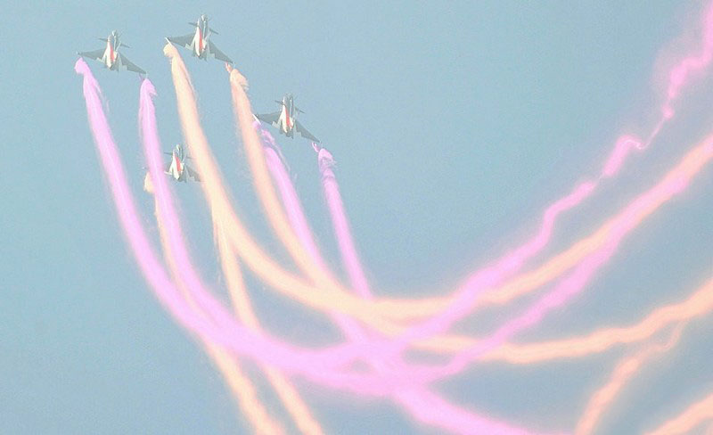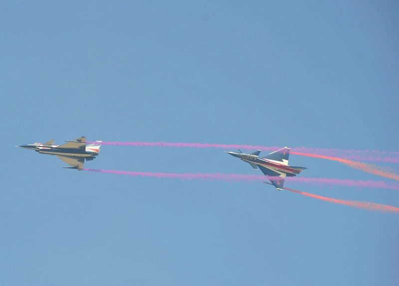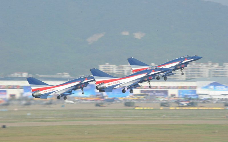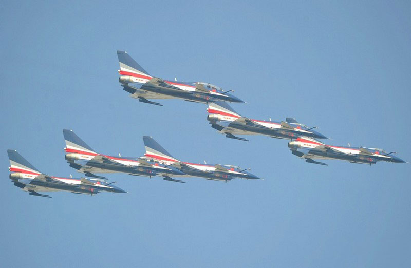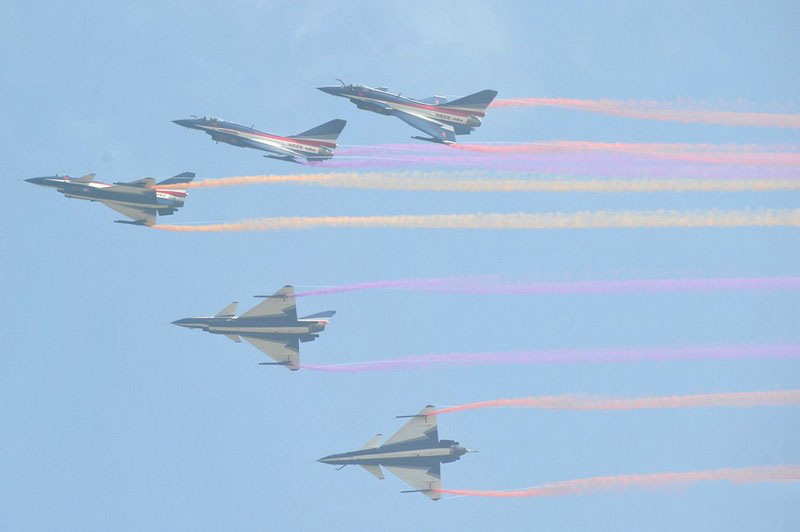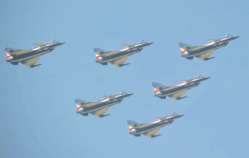 【環(huán)球網(wǎng)赴珠海航展特派報道組綜合報道】第九屆中國國際航空航天博覽會(珠海航展2012)將于11月13日-18日在廣東省珠海市金灣區(qū)三灶鎮(zhèn)隆重舉行。開展當(dāng)日,中國空軍八一飛行表演隊的6架殲-10戰(zhàn)機翱翔藍(lán)天,漫步云端。