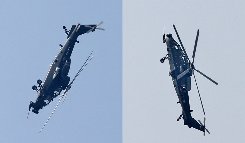我國(guó)自主研制生產(chǎn)的武直-10武裝直升機(jī)亮相在珠海舉行的第九屆中國(guó)國(guó)際航空航天博覽會(huì),在飛行表演中展示了這款直升機(jī)的優(yōu)良性能。