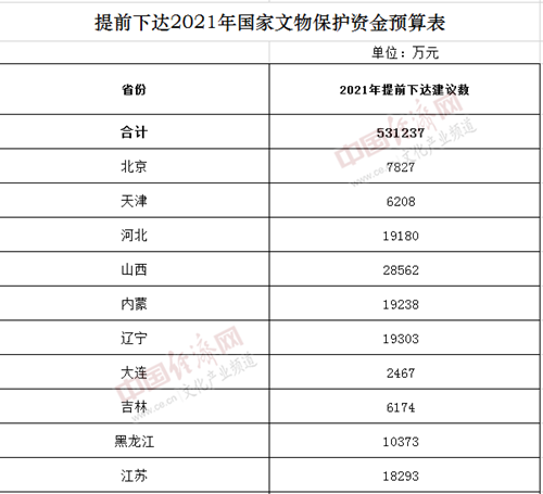 為提高預算完整性,加快支出進度,經(jīng)研究,現(xiàn)提前下達2021年國家文物保護資金(項目代碼:Z135050009036,收入列2021年政府收支分類科目“1100247文化旅游體育與傳媒共同財政事權轉移支付收入”,支出列“207文化旅游體育與傳媒支出”),用于文物保護項目的文物維修保護、文物安防、消防及防雷等支出,具體項目名稱和金額詳見附件。重點項目預算評審結果見國家文物保護資金項目庫。