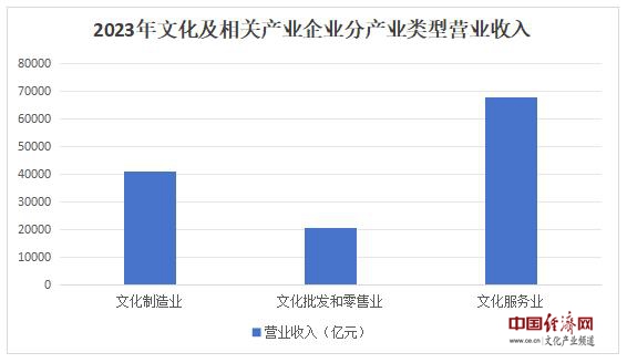 分產業(yè)類型看,文化制造業(yè)實現營業(yè)收入40962億元,比上年增長0.6%;文化批發(fā)和零售業(yè)20814億元,增長6.1%;文化服務業(yè)67739億元,增長14.1%。