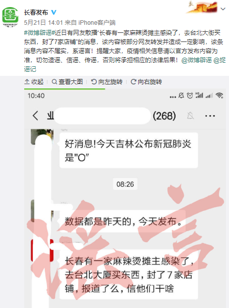 謠言粉碎機(jī)三:長(zhǎng)春一麻辣燙攤主感染新冠病毒,7家店鋪被封?謠言!