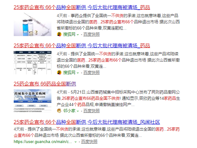 因此,日前有個別媒體報道稱“25家藥企宣布66個藥品全國斷供”。經(jīng)濟日報-中國經(jīng)濟網(wǎng)記者梳理發(fā)現(xiàn),“66個藥品品規(guī)全國斷供”這種說法并不成立,目前藥品仍在全國供應(yīng)。