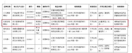 通告顯示,經(jīng)湖南省藥品檢驗檢測研究院檢驗,標(biāo)示為四川逢春制藥有限公司生產(chǎn)的1批次玄麥甘桔顆粒(批次:210910)不符合規(guī)定,不符合規(guī)定項目為含量測定。