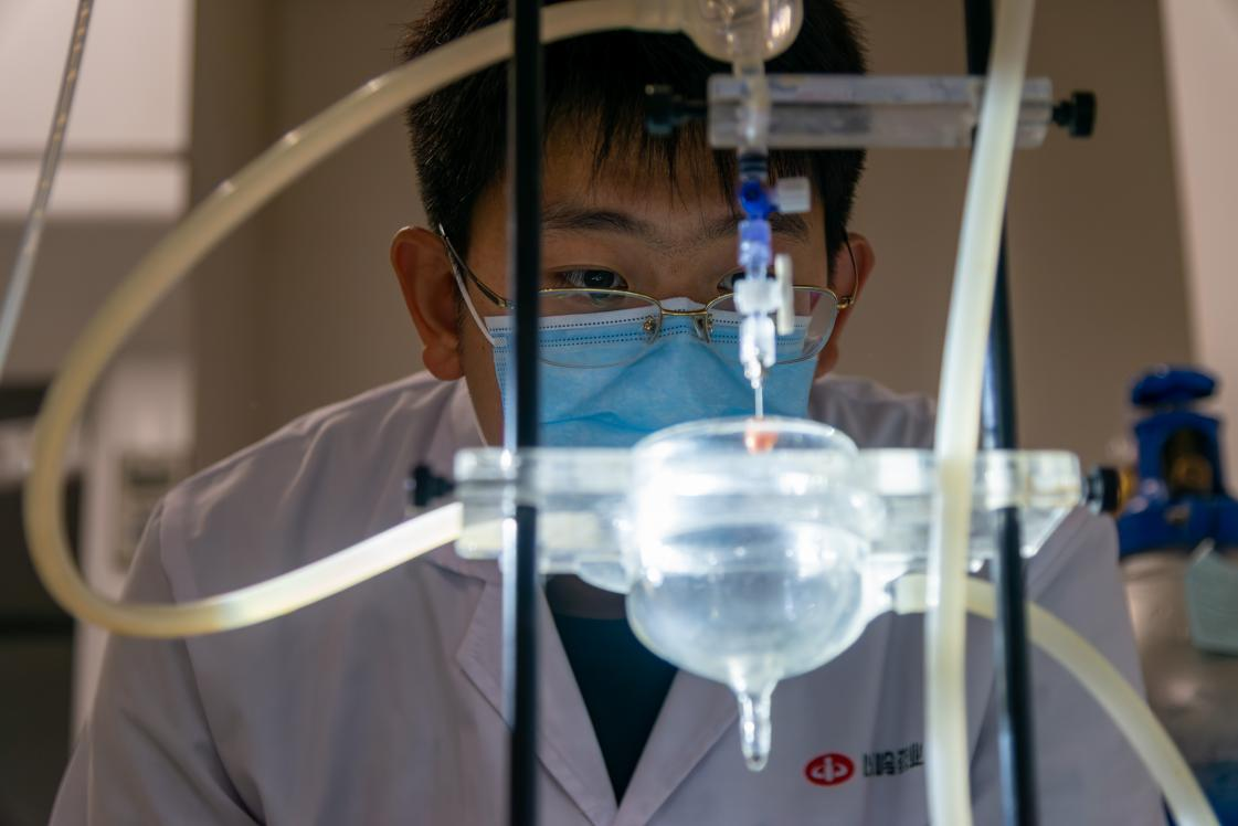 以嶺藥業(yè)院士工作站實驗室內(nèi),一名科研人員正在做實驗。受訪者供圖
