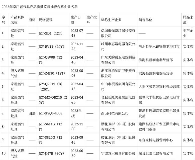 2023年度鹽城市市場監(jiān)督管理局委托南京市產(chǎn)品質(zhì)量監(jiān)督檢驗院(南京市質(zhì)量發(fā)展與先進技術(shù)應(yīng)用研究院)組織實施家用燃?xì)饩弋a(chǎn)品市級監(jiān)督抽查。本次抽查計劃10批次,抽到10批次,經(jīng)檢驗合格10批次。