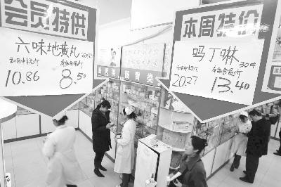 2月26日,利君堂大藥房北京安定門店內(nèi),市民正在選購特價(jià)藥,藥店里貼出了與社區(qū)醫(yī)院零差價(jià)藥品的價(jià)格對比。衛(wèi)生體制改革依然是本屆兩會的關(guān)注焦點(diǎn)之一。本報(bào)記者薛珺攝