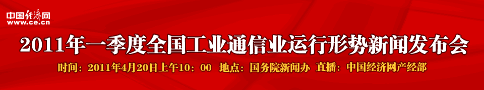 國新辦定于2011年4月20日(星期三)上午10時在國務(wù)院新聞辦新聞發(fā)布廳舉行新聞發(fā)布會,請工業(yè)和信息化部黨組成員、總工程師朱宏任介紹2011年一季度全國工業(yè)通信業(yè)運(yùn)行形勢,解讀當(dāng)前工業(yè)、通信業(yè)領(lǐng)域熱點(diǎn)難點(diǎn)問題,并答記者問。中國經(jīng)濟(jì)網(wǎng)直播,敬請關(guān)注!