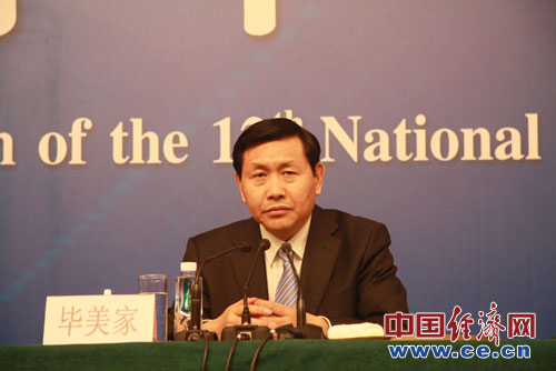 3月11日(星期一)下午3時,農(nóng)業(yè)部副部長陳曉華,農(nóng)業(yè)部總經(jīng)濟師、辦公廳主任、新聞發(fā)言人畢美家將就“增強農(nóng)村發(fā)展活力,穩(wěn)定發(fā)展糧食和農(nóng)業(yè)生產(chǎn)”的相關(guān)問題回答中外記者的提問。圖為農(nóng)業(yè)部總經(jīng)濟師、辦公廳主任、新聞發(fā)言人畢美家答記者問。(中國經(jīng)濟網(wǎng)朱津津 攝影)