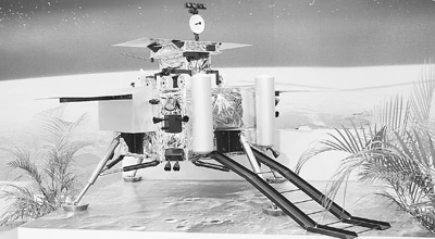 上部小車為月面巡視器模型,下為月面軟著陸探測器模型。我國探月工程二期將研制和發(fā)射月面軟著陸探測器和巡視器,開展月面探測活動,實現(xiàn)落月目標,也就是嫦娥三號任務(wù)。
