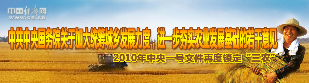 2010年中央一號(hào)文件以“加大統(tǒng)籌城鄉(xiāng)發(fā)展力度、進(jìn)一步夯實(shí)農(nóng)業(yè)農(nóng)村發(fā)展基礎(chǔ)”為主題,充分體現(xiàn)了中央關(guān)于加強(qiáng)“三農(nóng)”工作的一貫要求,指明了鞏固和發(fā)展農(nóng)業(yè)農(nóng)村經(jīng)濟(jì)好形勢的根本方向。
